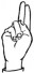 На ћирилици написано ДАРИЈА ТЕОФИЛОВИЋ састоји се из 16 слова [?]. Исписано ћириличном једноручном азбуком за глувонеме:
